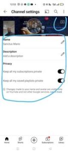 Then put the name, description and the channel art that you designed at canva. after putting your name and description, use that camera image by the top right corner and upload the channel art that you designed at canva. Use the camera image at the middle and upload your main YouTube image.