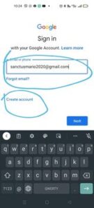 If you do not have gmail account, you can then create account. Just click create account and create your google account.